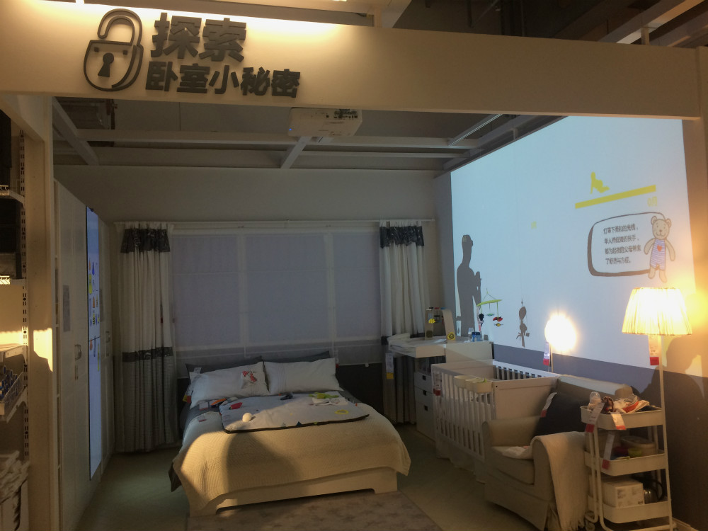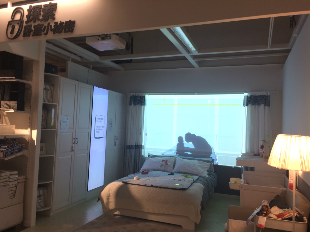 通過這種結(jié)合,原本靜態(tài)的展間,一轉(zhuǎn)身就成為了流動的故事載體。如果年輕夫妻走過,也許就在這短短一兩分鐘的動畫故事中看到了自己的未來生活,以及宜家產(chǎn)品在他們家庭中的位置。