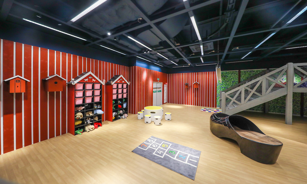 正如上文介紹,番禺商場的“鄰居”大多都是育有孩子的家庭。因此,為了讓父母可以更安心地購物,商場設(shè)置了斯馬蘭兒童樂園,可為顧客照看孩子。