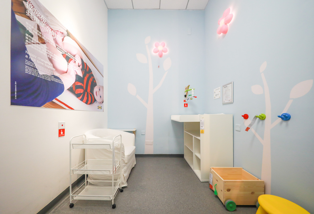 對于帶有嬰幼兒的父母,商場設(shè)有設(shè)計溫馨的母嬰室,并在餐廳區(qū)域配有嬰兒車停放處。
