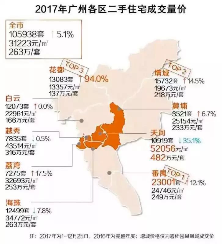 (2017年廣州公寓各區(qū)域成交對比圖)