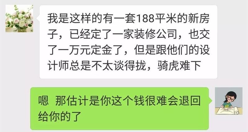 在找我們設(shè)計(jì)之前,她們已經(jīng)定了一家裝修公司,還交了一萬元的定金;然后在設(shè)計(jì)的過程卻跟設(shè)計(jì)師談不攏,騎虎難下,所以就想找我們出設(shè)計(jì)方案。