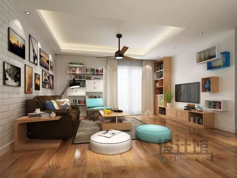 ▲客廳電視墻在簡單整潔的乳膠漆基礎(chǔ),加入實(shí)用豐富的格架收納柜,讓電視墻顯得更加的豐富美感;而沙發(fā)墻則是以白色文化磚結(jié)合一面照片墻的設(shè)計(jì),沙發(fā)側(cè)邊則是擺一個宜家范的小書架,閑暇時,漫卷詩書坐在沙發(fā)上,立于一旁的落地窗戶前,為你的視野增添一抹靚麗的風(fēng)景色。