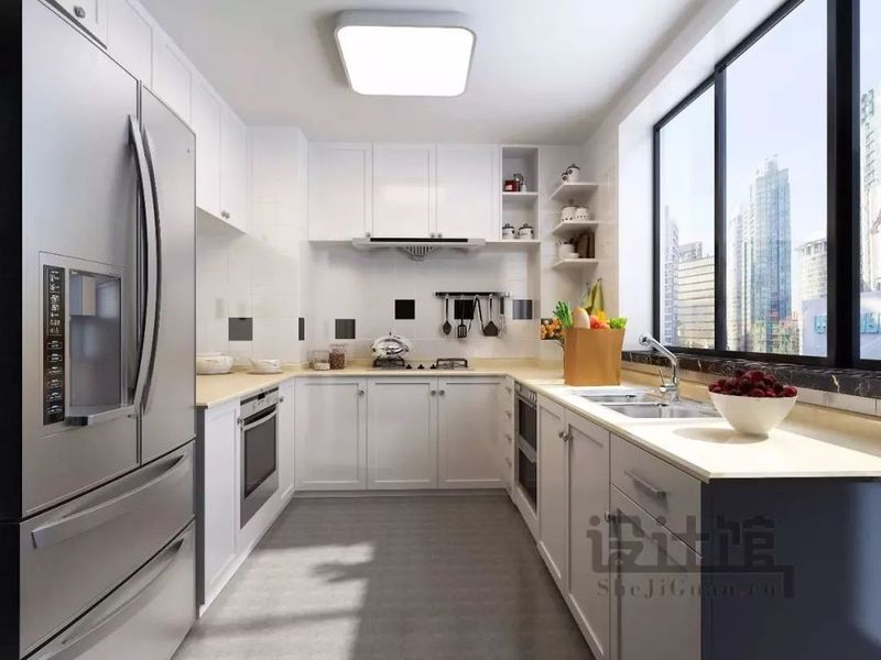 ▲廚房以U型的格局,女主人喜歡干凈,整體以簡潔的白色色調(diào)為主,在大面積窗戶的襯托下,簡潔大方,為她提供了一份愜意輕松的烹飪空間。