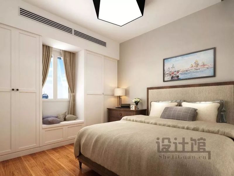 ▲主臥整體空間以溫馨的暖色調(diào)為主,為主人營造了一個溫馨安逸的睡眠空間;拆除了原有的飄窗,在靠窗位置是裝了一個書桌與梳妝臺結(jié)合的轉(zhuǎn)角臺面,比起飄窗,這樣的設(shè)計(jì)顯然實(shí)用多了。