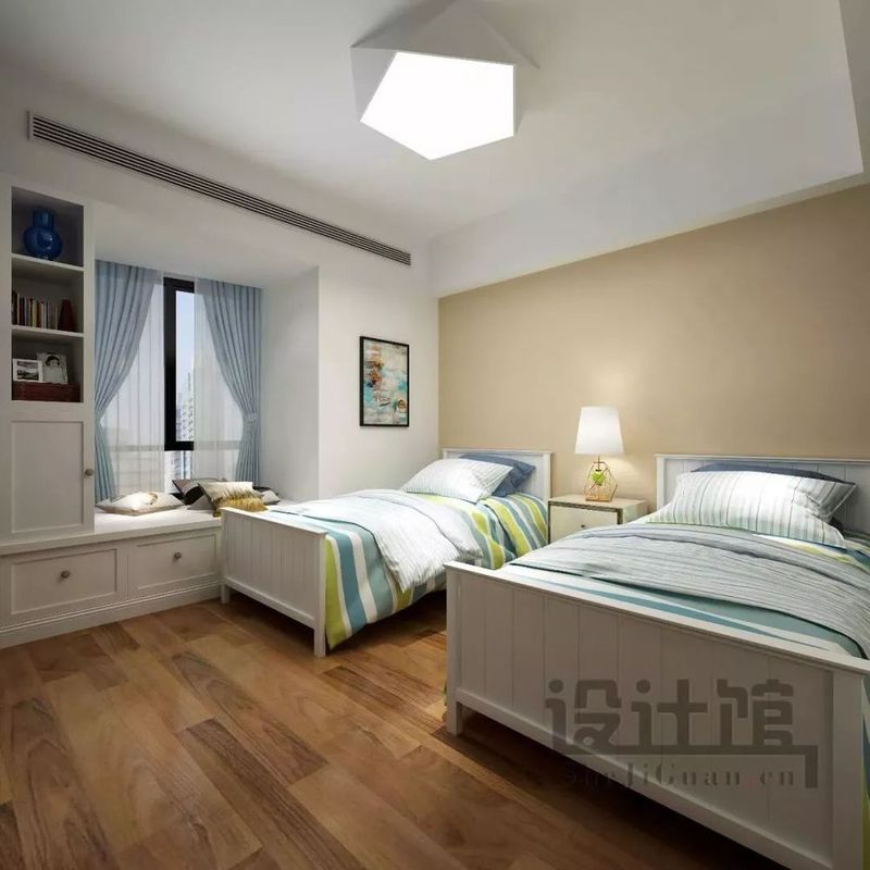 ▲次臥以子母床雙床模式,方便照料老人的作息空間。房內(nèi)飄窗設(shè)計(jì),置物休息兩相用。