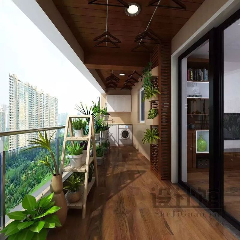 ▲陽臺是女主人最熱衷的一個空間,設(shè)有養(yǎng)殖植物的收納架,種上些許花花草草,絕對是女主人愛不釋手的一個小世界。