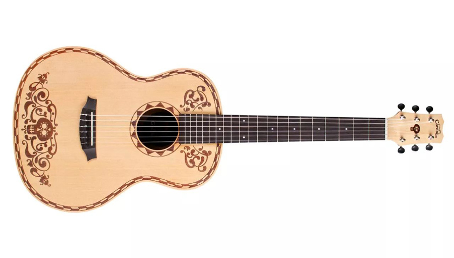 和這把Coco吉他一起踏上音樂旅程吧!這把吉他的靈感來自于這部迪士尼的電影“Coco”。配有云杉面板和桃花心木背側(cè),涂裝了耐磨損的啞光聚氨酯漆面;和電影里那把吉他一樣,這款Coco吉他有著澄澈溫暖的音色;配置了柔軟的尼龍琴弦,非常適合初學(xué)者演奏,琴體相對正常尺寸吉他較小,弦長為24 3/4″(630mm),共20品;琴頸材質(zhì)為桃花芯木,截面形狀為C型,演奏體驗極佳,手感舒適;面板和琴頭都帶有激光蝕刻的精美圖樣,靈感來自電影中的墨西哥傳統(tǒng)文化;另配有Córdoba琴包和背帶。(售價:1580元人民幣)