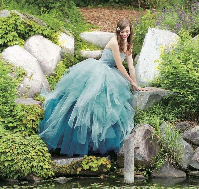 小美人魚系列:錯(cuò)落有致的藍(lán)色紗裙,好像一條魚尾,好夢幻。