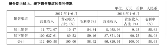 與以往我們認知不同的是,線上銷售的毛利率要低于線下,與自營店的65.23%相差甚大。