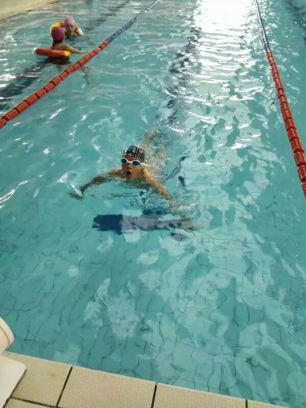 當(dāng)天下午,爸爸帶汪欽呈去河南省體工大隊游泳訓(xùn)練的時候,在車上他向爸爸炫耀了獎?wù)隆0职州p輕掃了掃兒子的頭發(fā),作為獎勵,允許兒子在路上玩一會兒手機。兩個小時的游泳訓(xùn)練,在傍晚17:30分的時候準時開始,三年來,周而復(fù)始,雷打不動。摘掉助聽器下水,一切又寂靜了,只有水花拂過耳朵的輕柔,卻聽不到水花歡唱,汪欽呈享受著水中的寧靜和快樂,泳池就是他的王國,水花就是他的臣民,而他是水中王子。