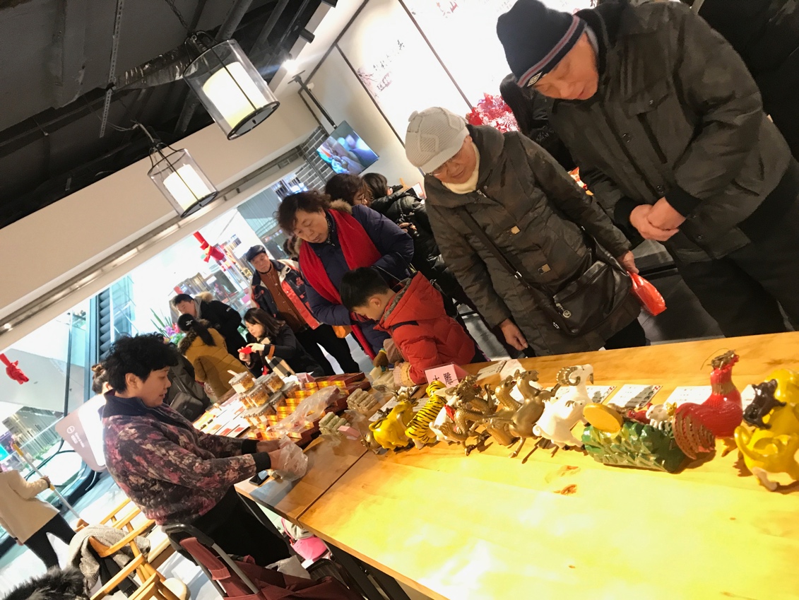 活動邀請了來自各行各業(yè)行業(yè)的非物質(zhì)文化遺產(chǎn)項(xiàng)目傳承人以及眾多民間傳統(tǒng)手工藝從業(yè)者,包括無錫紙馬、剪紙、九連環(huán)、內(nèi)畫、梨膏糖、木雕、甜酒糧、油酥餅、桂花酒、銀絲面、玉祁雙套酒、腳踏年糕、阿三百葉等數(shù)十種非遺美食與民間傳統(tǒng)手工藝項(xiàng)目,首次與商場合作互動,讓錫城市民與商場消費(fèi)者都體驗(yàn)到了非遺美食與民間傳統(tǒng)文化的豐富多彩。活動更有幸的邀請來了梁溪區(qū)美術(shù)家協(xié)會正、副兩位主席陳德華、趙銘之老師親臨現(xiàn)場為活動揮毫潑墨,為錫城市民送上一對對飽含滿滿寓意、吉祥如意的春聯(lián)與福。