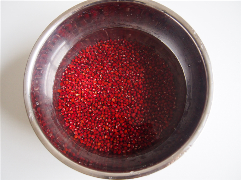準(zhǔn)備好紅豆,挑去里面的雜質(zhì),洗凈后,浸泡12小時(shí)左右,然后放入高壓鍋中煮熟。