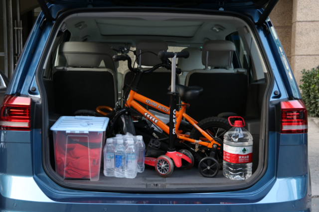 12月的上海,天氣已經(jīng)非常寒冷,兒子的保暖工作必須做好。御寒要用的小毯子、兒子出行必備的小推車、哄兒子的玩具、滑板車以及各種小零食,這些都必須準(zhǔn)備妥當(dāng)。上述物品可以很輕松的放入車內(nèi),途安L的后排座椅支持按比例放倒,拓展后的空間能達(dá)到1857L,非常能裝。