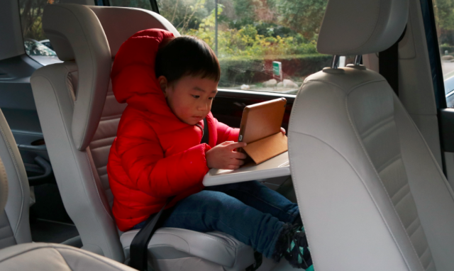 雖然途安L來我們家沒多久,但兒子對(duì)于后座的集成式兒童安全座椅已經(jīng)熟門熟路,每一次出行都是自己爬上座位。這里還得表揚(yáng)一下途安L,有小孩的朋友都知道,如果在后排座椅上額外安裝一個(gè)兒童安全座椅,那后排就只能坐下一位乘客。途安L配備的集成式兒童安全座椅不占用空間,后排可以很輕松坐下兩位乘客,方便又實(shí)用。