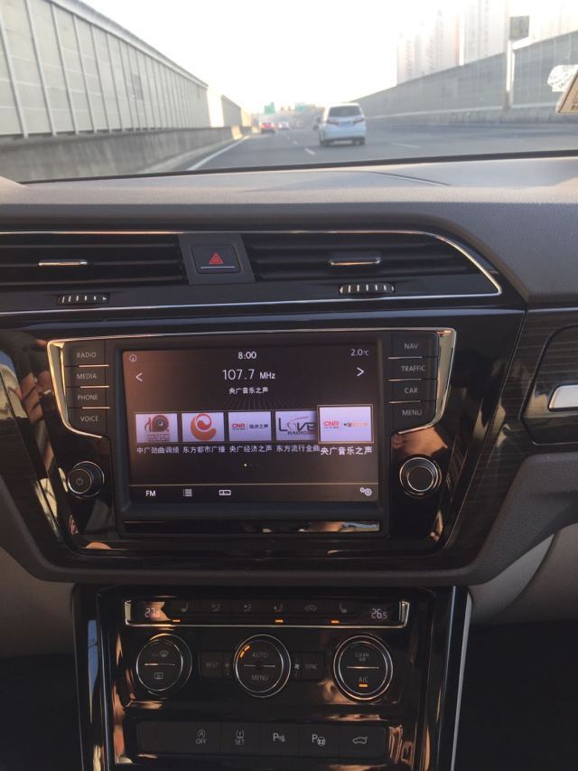 準(zhǔn)備工作已完成,兒子也已在安全座椅上就坐,我趁機(jī)露個(gè)臉后,就打算正式出發(fā)了。我們家住閔行莘莊,出發(fā)前往迪士尼大約35公里,正好遇上早高峰繞了點(diǎn)路,共計(jì)用時(shí)1個(gè)多小時(shí)。我開車喜歡聽廣播,在8英寸中控屏設(shè)置好音樂之聲頻道,就能和喜歡的音樂不期而遇了。這套MIB二代Standard導(dǎo)航多媒體娛樂終端 ,支持單碟CD,USB/SD/AUX-IN接口, 高級(jí)藍(lán)牙,MirrorLink,Apple CarPlay,CarLife,手機(jī)映射,功能非常強(qiáng)大。