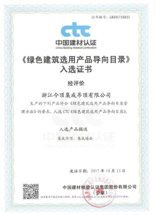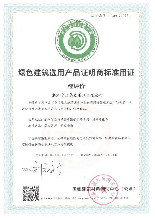 一直以來(lái),今頂集成吊頂堅(jiān)持高端產(chǎn)品定位,產(chǎn)品質(zhì)量通過了ISO9001-2008國(guó)際管理體系認(rèn)證,并多次獲得國(guó)家或省部級(jí)認(rèn)證、推廣的健康、安全、節(jié)能、環(huán)保類證書,入選了【綠色建筑選用產(chǎn)品導(dǎo)向目錄】及準(zhǔn)許使用【綠色建筑選用產(chǎn)品證明商標(biāo)】,綠色環(huán)保、優(yōu)質(zhì)安全的形象深入人心——