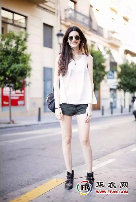 \u00A0\u00A0\u00A0 白色短褲總給人一種純白氣質(zhì),很干凈的味道,搭配簡約無袖黑色上衣,輕松up時髦感