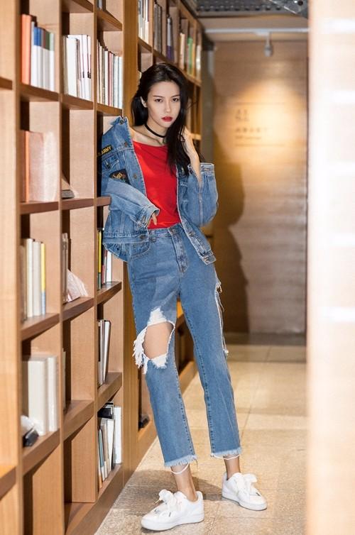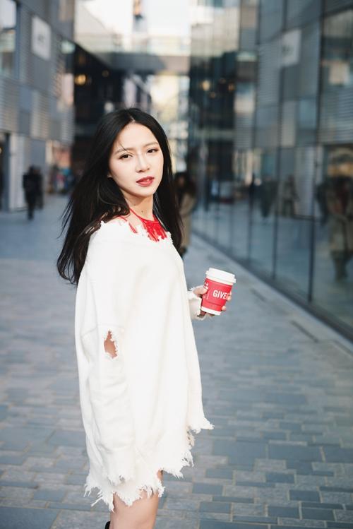 文藝范十足的張昊玥把暖衣穿出高級時(shí)尚感,破洞褲、小白鞋還能跟大飽和紅色暖衣混搭,清新脫俗,一整套look散發(fā)著少女的可愛又帶著一些成熟感。