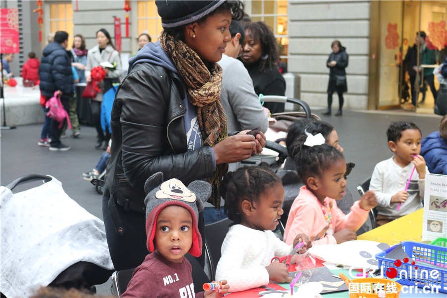 參加當(dāng)日“中國(guó)新年家庭日”的美國(guó)家庭制作狗年及熊貓面具。(攝影:劉坤)
