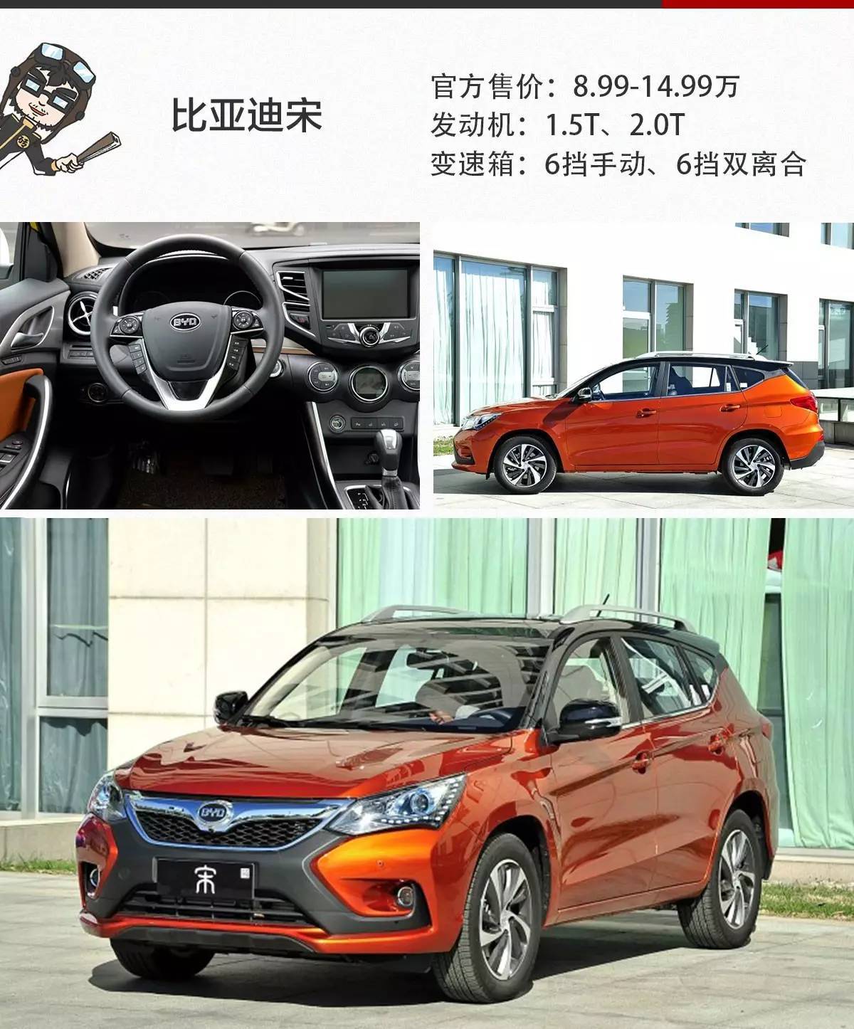 磚叔點(diǎn)評(píng):宋是比亞迪“542戰(zhàn)略”下的一款緊湊型SUV,汽油版的宋全系渦輪增壓,外觀好看回頭率高,配置豐富,動(dòng)力強(qiáng)勁,特別適合年輕人。比亞迪宋全系標(biāo)配車(chē)載藍(lán)牙功能哦!