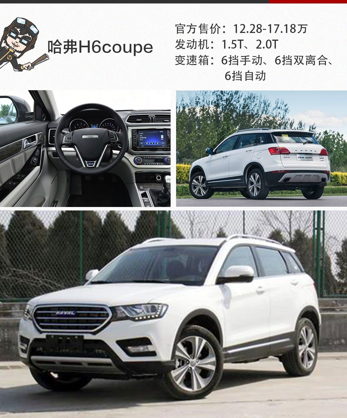 磚叔點(diǎn)評(píng):哈弗H6系列產(chǎn)品非常多,H6coupe是顏值最高的,時(shí)尚運(yùn)動(dòng)精致。哈弗H6 coupe有汽油和柴油兩種版本發(fā)動(dòng)機(jī)選擇,內(nèi)飾做工也非常用心,配置也豐富。當(dāng)然,也全系標(biāo)配車(chē)載藍(lán)牙,但價(jià)格也是定到了12.28萬(wàn)的起步價(jià)。