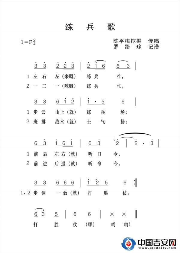 “左右左,練兵忙,步云山前演兵場(chǎng);前后左右聽(tīng)口令,步調(diào)一致打勝仗。左右左,練兵忙,班排戰(zhàn)術(shù)士氣揚(yáng);沖鋒撤退聽(tīng)命令,步調(diào)一致打勝仗。”