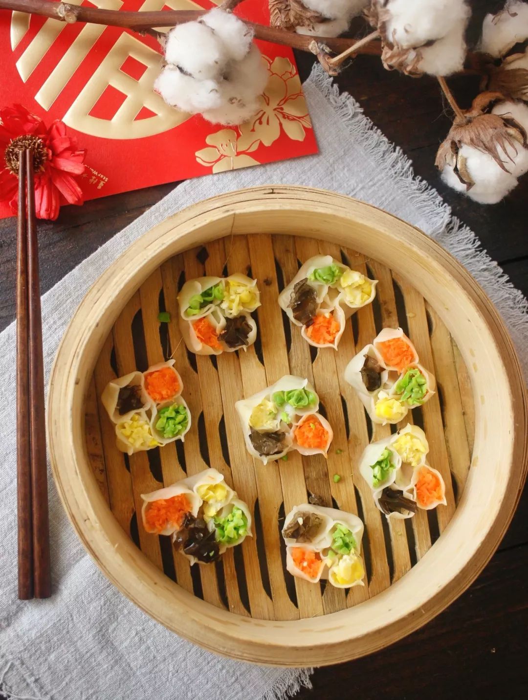 6、待蒸鍋中水煮沸后,上蒸籠大火蒸6分鐘,四喜花型蒸餃就美美地大功告成啦!