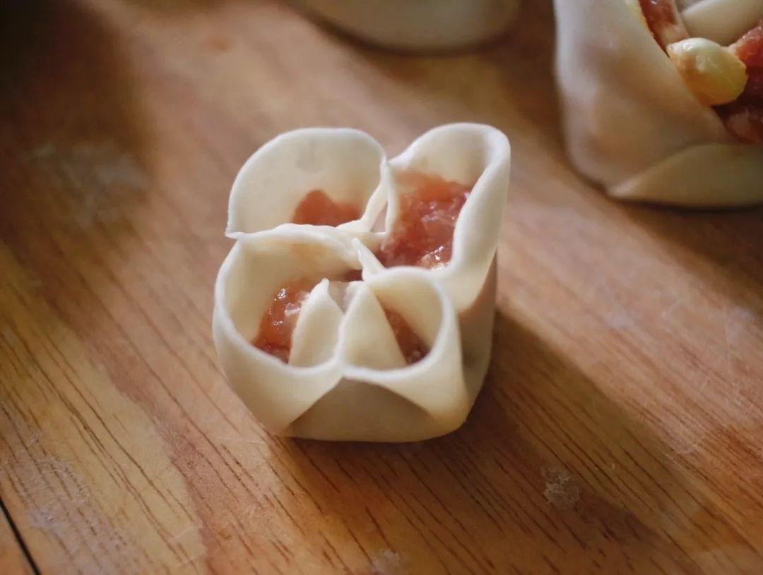 B.底層的肉餡不宜放太多,肉餡越少,越容易捏合出花瓣?duì)睢?/p>