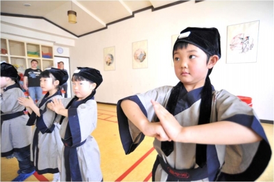 \u00A0\u00A0\u00A0\u00A0揚(yáng)州網(wǎng)訊\u00A0(杭春燕)\u00A0昨日,揚(yáng)州機(jī)關(guān)三幼文昌園內(nèi)100多名孩子全部身著統(tǒng)一的漢服,頭戴書生帽,一張張稚氣的小臉掛滿了認(rèn)真與興奮,為現(xiàn)場的觀眾帶來了茶道表演、《弟子規(guī)》吟誦、26式童學(xué)拳等一系列精彩節(jié)目,博得了現(xiàn)場家長的陣陣掌聲。