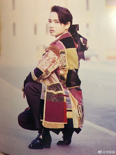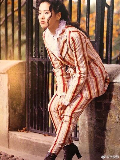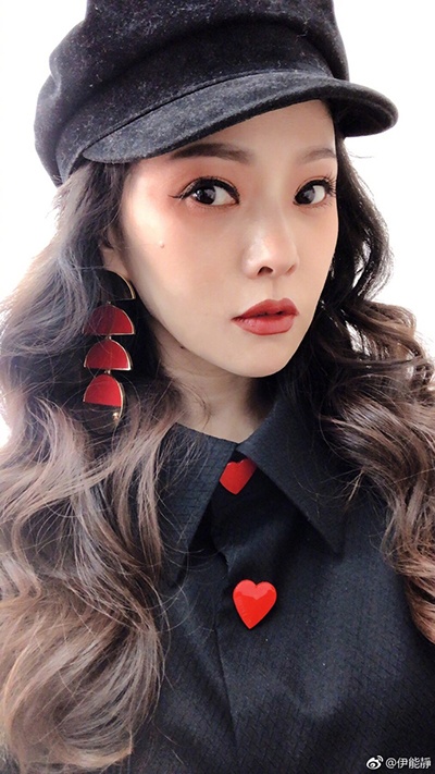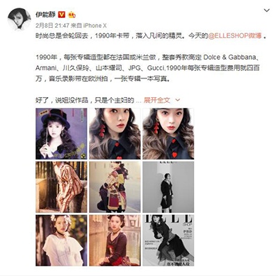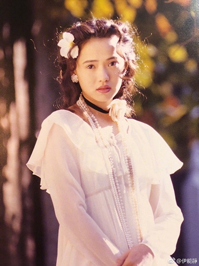 照片中,伊能靜留著卷發(fā),滿臉膠原帶白十分青澀,她穿著透視裙,眼神迷離魅力十足。