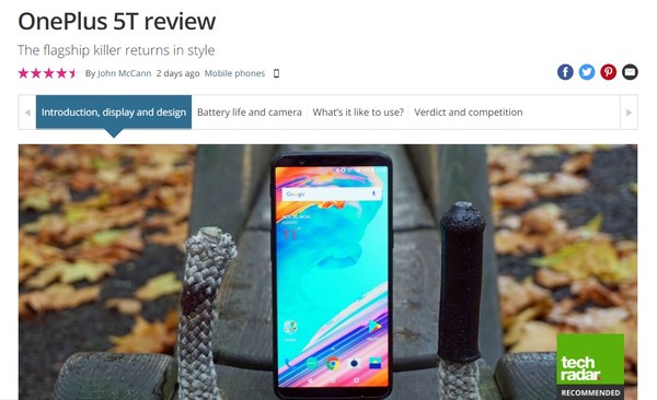 一加5T發(fā)布后廣受好評,多家海外知名媒體均給出極高的評價。《衛(wèi)報》認(rèn)為一加5T是一款5星手機(jī),知名安卓社區(qū)Andriod Authority表示一家5T是高品質(zhì)安卓手機(jī)的最佳選擇。