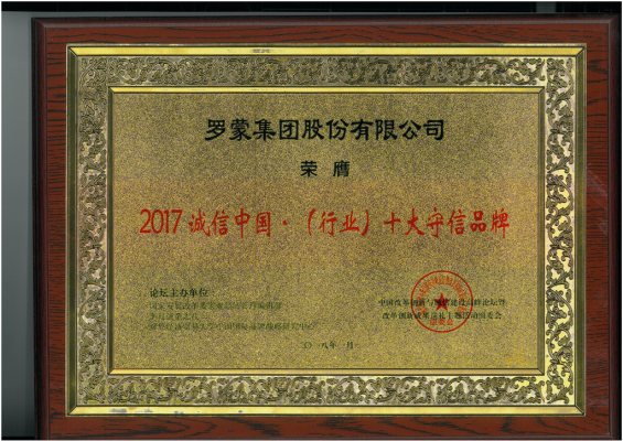 ??羅蒙集團榮獲2017誠信中國?十大守信品牌