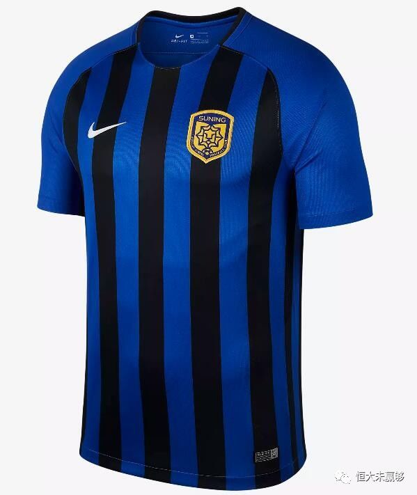蘇寧的球衣變化最大,和國(guó)際米蘭的球衣幾乎一樣,從天藍(lán)色改用藍(lán)黑豎條球衣。