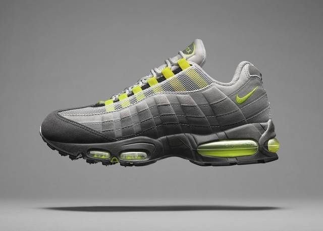 之后的時(shí)間里,耐克就一直在追求增加新產(chǎn)品的空氣量和減少發(fā)泡材料。在這個(gè)過程中,又出現(xiàn)了被稱為吹塑法的全新 Air-Sole 制作方法,可以讓 Air-Soles 在不依賴氣壓的情況下 3D 成型。這種新技術(shù)第一次應(yīng)用于 Air Max 93,又在后來 Air Max 95 上實(shí)現(xiàn)了更夸張的應(yīng)用——同時(shí)設(shè)計(jì)兩個(gè)獨(dú)立的 Air-Sole 單元,讓前腳氣墊也能夠?qū)崿F(xiàn)可視化。