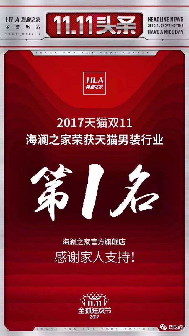 隨后,海瀾之家選擇將電商戰(zhàn)場(chǎng)重點(diǎn)布局在天貓,并且在2017年的雙十一節(jié)中拿下男裝排名第一的好名次。