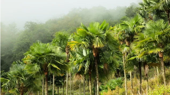 在海拔1800米高的云貴高原上,生長著高達(dá)15米的山棕樹,其葉色蔥蘢,樹枝挺拔,棕櫚葉鞘為扇型,有棕纖維,剝其棕皮纖維可作繩索,蓑衣,棕繃。