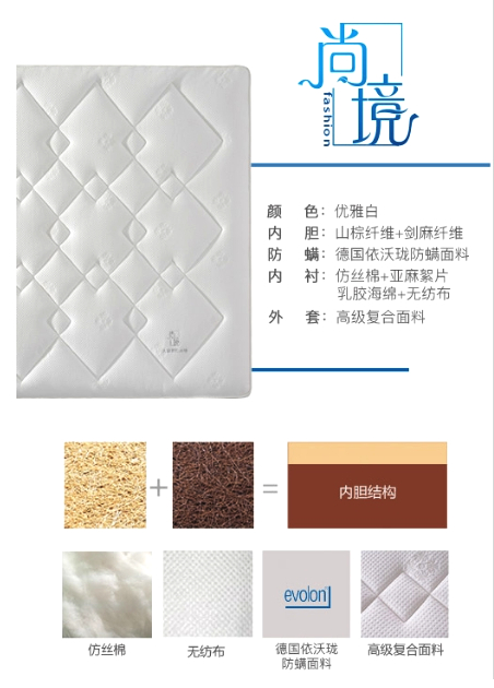 尚境床墊是大自然首款三段式設(shè)計(jì)床墊, 其支撐層,緩釋層,舒適層的分段設(shè)計(jì),滿足了睡眠期間身體不同部位的特殊需求,在最短的時(shí)間獲得最高質(zhì)量的睡眠。尚境8層優(yōu)質(zhì)材料結(jié)構(gòu)填充,分層釋放身體各部壓力,16CM珍稀山棕頭絲和3CM劍麻纖維絲打造而成的支撐層,硬朗卻不乏柔和的魅力,雙重材料雙重體驗(yàn)用芯打造,給身體帶來不止一面的支撐體驗(yàn)。