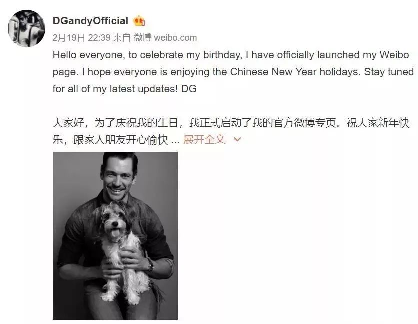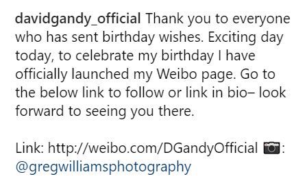 或許這啟發(fā)了David Gandy的團隊進軍中國的想法,昨天David Gandy 就在所有的社交媒體賬號上宣布自己開通了微博。