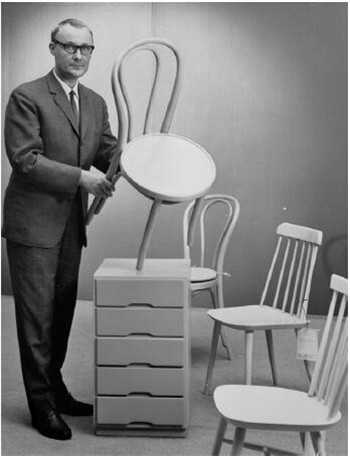 1948年,坎普拉德頭一次登廣告賣家具,他當(dāng)時居住在莫科恩湖附近,周圍有很多小家具制造商。他發(fā)現(xiàn)要記下所有商品的郵寄編號太費(fèi)工夫,于是干脆給家具取了名字,比如沒有扶手的椅子就叫“拉特”(Lut)。給每件家具取名字,也就此成了宜家的傳統(tǒng)。