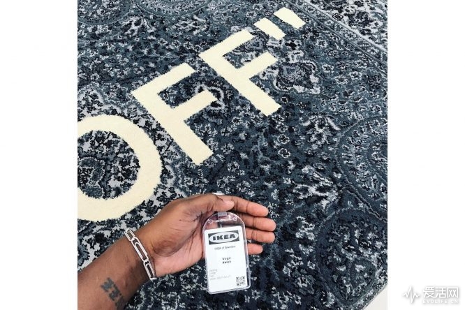 去年10月,Virgil Abloh在前去宜家瑞典總部活動時,曝光了一張聯(lián)名地毯的照片。藍色的佩斯利花紋的地毯,配上了標(biāo)志性的OFF字樣,一下子就潮了起來。.