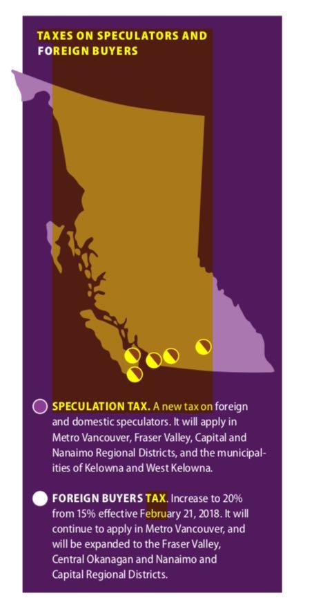 另外,該省政府還推出了全新的房產(chǎn)投機稅,那些不在當?shù)乩U稅的外籍和本土的投機者將成為征收對象,其中包括了那些購房后空置的案例,還有衛(wèi)星家庭案例即那些全球收入廣泛,但在BC省繳納很低收入稅的家庭。投機稅為年度征收制,在2018年,投機稅為基于房產(chǎn)的評估價值,每1000加元價值繳納5加元稅收;到2019年,將上升至每1000加元價值繳納20加元的水平。征收范圍為大溫哥華地區(qū)、Fraser峽谷等地區(qū)。