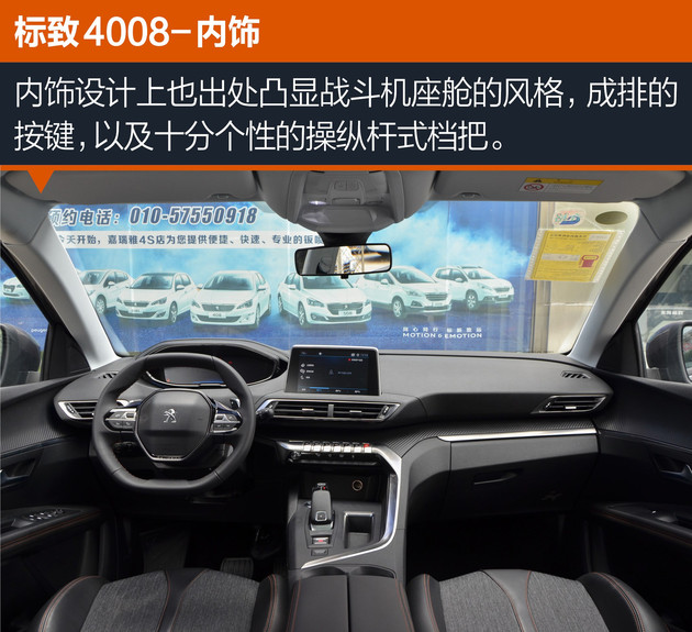 【東風(fēng)標(biāo)致4008報(bào)價(jià),標(biāo)致4008怎么樣】全新標(biāo)致內(nèi)飾配置上:標(biāo)致4008采用名為“i-Cockpit”的內(nèi)飾設(shè)計(jì)語(yǔ)言,法國(guó)車(chē)的絕技在內(nèi)飾上可謂發(fā)揮到了極致,平頂平底的方向盤(pán)、全液晶儀表盤(pán)、撥桿式的中控按鍵,你說(shuō)是開(kāi)什么能飛起來(lái)的東西都行就是不像在開(kāi)車(chē)。做工方面也是下了功夫,各種軟質(zhì)材料包裹輔以雙色縫線,再搭配上實(shí)木面板,同價(jià)位真沒(méi)誰(shuí)了。配置方面也表現(xiàn)出色,頂配車(chē)型搭在香薰系統(tǒng)、高級(jí)品牌音響系統(tǒng)、氛圍燈等等,有點(diǎn)DS品牌的意思了,尤其是座椅,看上去簡(jiǎn)直就是從DS的車(chē)上直接搬下來(lái)一樣,Nappa真皮座椅出現(xiàn)在了頂配車(chē)型的選裝名單中,我們的試駕車(chē)就選配了該座椅,看上去顯檔次,坐上去支撐感舒適性都不錯(cuò)。除了感到了豪華感,設(shè)計(jì)感更是讓人印象深刻。標(biāo)致4008最低多少錢(qián),標(biāo)致4008裸車(chē)落地最低價(jià),東風(fēng)新款標(biāo)致4008配置內(nèi)飾怎么樣【咨詢熱線見(jiàn)新聞底部】