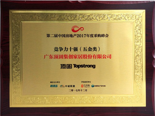 此次盛會吸引了600多位地產(chǎn)開發(fā)商及供應商齊聚一堂,共話房地產(chǎn)采購發(fā)展盛事。作為五金行業(yè)領(lǐng)跑者,頂固憑借強大的品牌影響力和卓越的品質(zhì),贏得房地產(chǎn)業(yè)界的一致認可,一舉摘得“2017年度中國房地產(chǎn)競爭力十強供應商――五金類?競爭力十強”頭銜!