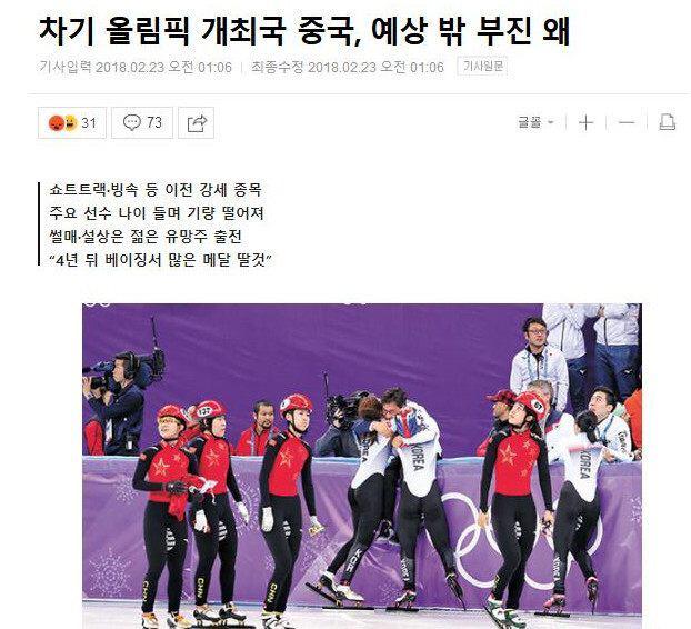 在中國(guó)隊(duì)還沒有獲得一枚金牌之前,而韓國(guó)媒體韓聯(lián)社就對(duì)中國(guó)隊(duì)的表現(xiàn)進(jìn)行了點(diǎn)評(píng),“2022年,冬奧會(huì)將在北京進(jìn)行,目前,中國(guó)隊(duì)在平昌的表現(xiàn)讓他們臉上無光。”韓媒認(rèn)為中國(guó)主到現(xiàn)在還沒獲得一枚金牌,使得作為下一屆冬奧會(huì)東道主的中國(guó)很尷尬。