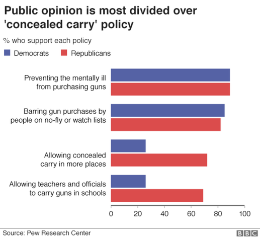 據(jù)了解,一些槍支管控措施得到了擁有不同政治立場者的廣泛支持,其中就包括禁止向患有精神疾病,或是在“監(jiān)控”名單之中的人售槍等。