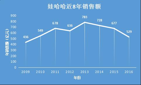 老掌門的“郁悶”是有原因的,2013年娃哈哈曾以783億銷售額無比接近千億目標,卻沒想到那是第一次也可能是最后一次。從2014年―2016年,娃哈哈連續(xù)3年業(yè)績下滑。