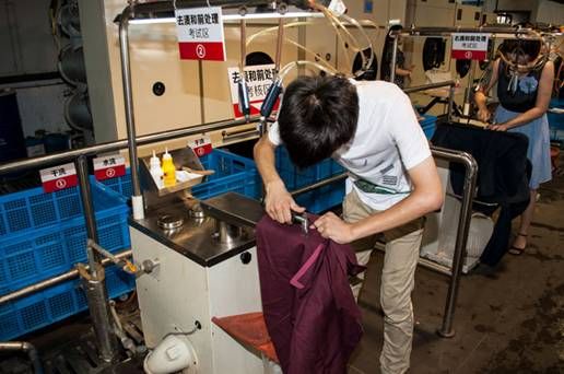 考試分為理論考核和實際操作兩個部分,上午場理論考核主要考核內容是基礎知識,包括前臺收衣、水洗、干洗、熨燙等四個模塊的內容。下午場實際操作考核則從前臺收衣、水洗、熨燙、襯衫折疊四個板塊考察了學員的能力。本次考試旨在通過洗衣的幾大基本板塊全面考察學員洗染技術。在幾位考評員的嚴格監(jiān)督下,本次考核順利舉行。屆時,通過考核的學員將獲得由上海市職業(yè)技能鑒定中心頒發(fā)的國家職業(yè)資格技能鑒定證書。