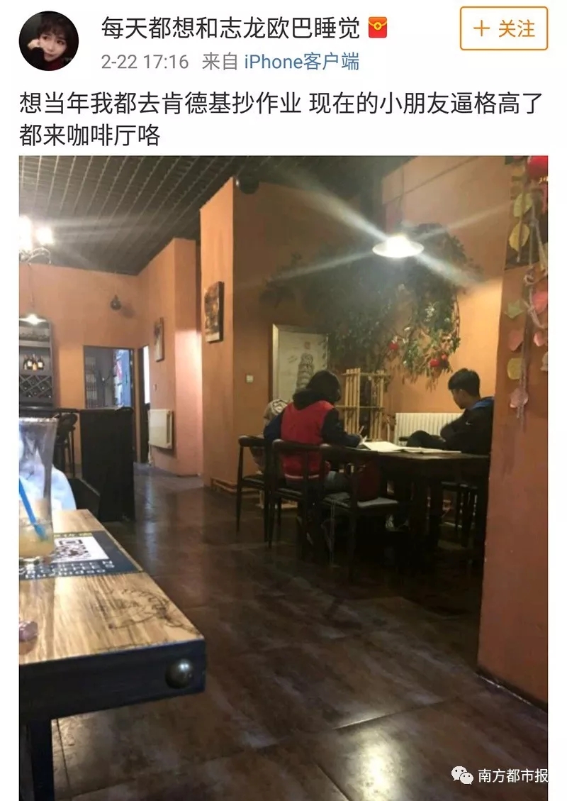 “我去市區(qū)的星巴克,一推門,全是學(xué)生在抄作業(yè)的……”