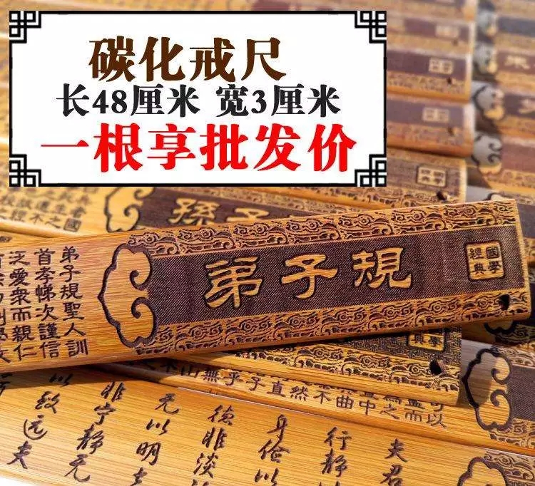 “寒假有同學(xué)來(lái)家里玩,同學(xué)驚喜地發(fā)現(xiàn)我們家的戒尺和他家的一樣,兩位小朋友親切友好地交流了戒尺上刻的文章,同學(xué)家的是《弟子規(guī)》,我家是《朱子家訓(xùn)》。”