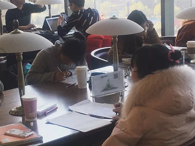 杭州圖書館一群學(xué)生在趕作業(yè)。圖片由讀者劉禹含提供